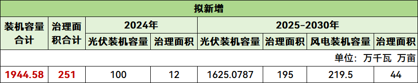 (四)2024年重點目標。2024年計劃新增光伏裝機容量100萬千瓦,由新增項目實施主體開展12萬畝沙化土地綜合治理,其中在光伏場區內治理沙化土地面積3萬畝,在光伏場區外的中和西鎮和恩格貝鎮(毛卜拉孔兌、布日嘎斯太孔兌和黑賴溝孔兌之間),劃定9萬畝退化林改造修復區用于沙化土地綜合治理。
