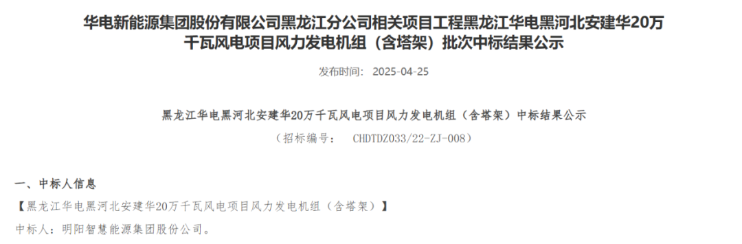 公告顯示,明陽(yáng)智慧能源集團(tuán)股份公司成功中標(biāo)該項(xiàng)目,中標(biāo)價(jià)格為70750.000000萬(wàn)元。