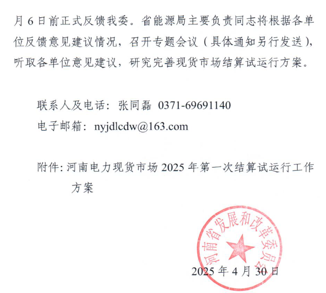 4月30日,河南省發改委發表了《關于征求電力現貨市場結算試運行工作方案意見的通知》,針對《河南電力現貨市場2025年第一次結算試運行工作方案》征求意見(以下簡稱《工作方案》)。河南將于5月份適時開展現貨市場結算試運行。
