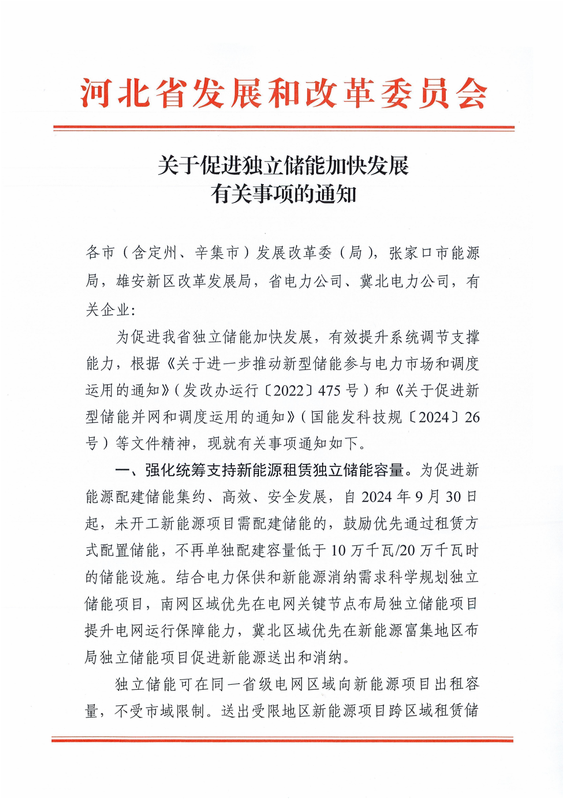 8月1日,河北省發(fā)改委發(fā)布《關(guān)于促進(jìn)獨(dú)立儲(chǔ)能加快發(fā)展有關(guān)事項(xiàng)的通知》,通知指出: